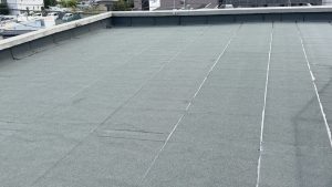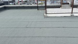 改質アスファルト防水トーチ工法シート貼り完了